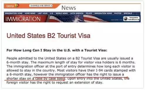 美國移民局官網(wǎng)規(guī)定:移民官有權(quán)決定入境的停留時間
